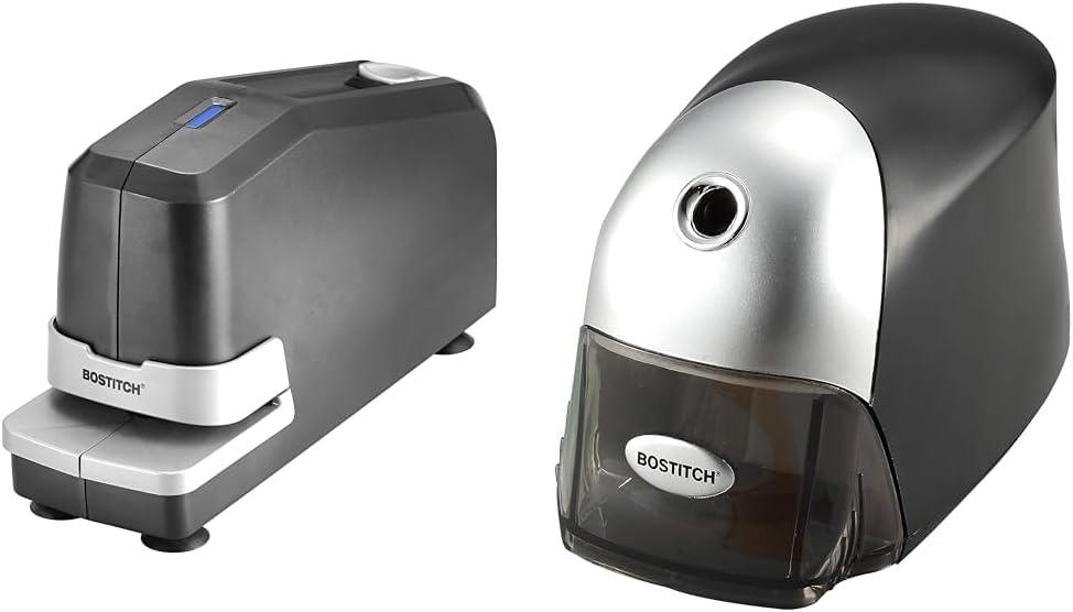 This bundle pairs a robust electric stapler with an electric pencil sharpener to equip your home office or workspace. The Bostitch Impulse Drive Electric Stapler delivers jam-free stapling for up to 20 sheets of paper. Its floating AntiJam core and solenoid-driven mechanism enable continuous stapling ease. With a 1/2″ throat depth, it uses standard 1/4″ staples in a full 210-staple strip. The Stanley Bostitch electric sharpener features hardened steel blades and an auto stop mechanism to prevent oversharpening. Its safety guard ensures safe operation, while the angled cutters provide consistent, quality points. With robust construction and safety features, this bundle offers reliable, efficient tools to organize documents and keep pencils ready to write.