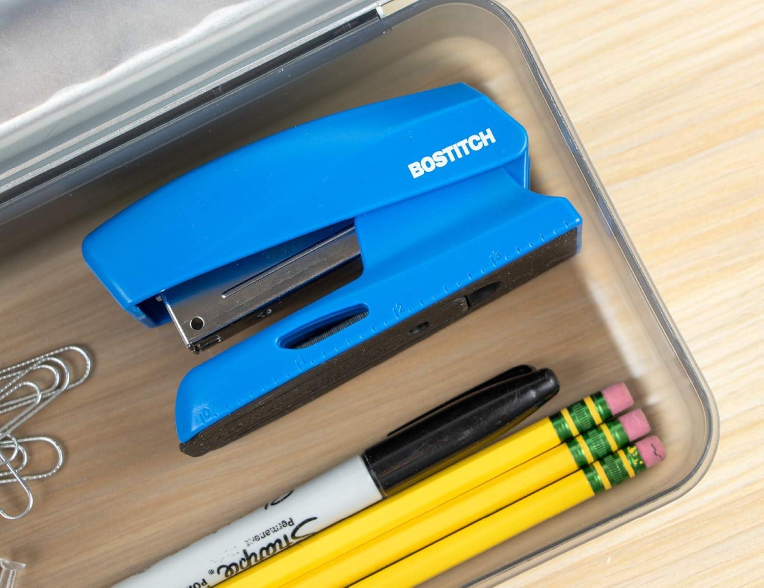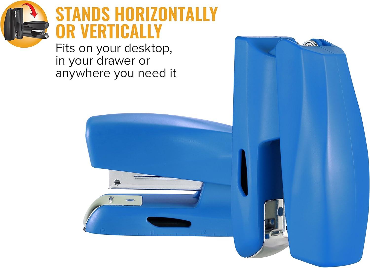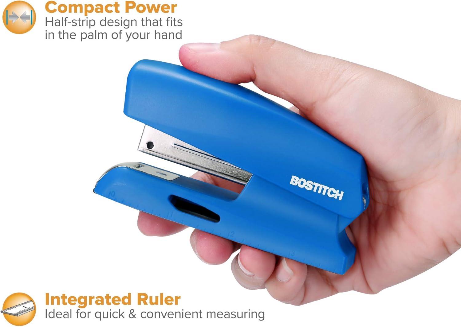 Experience quality stapling with this compact stapler. It staples up to 20 sheets at once with it's easy-to-handle compact design. Using standard staples, this half-strip stapler comes with 210 staples. It features an integrated StapleStore compartment on the base to keep extra sticks close by. Need to measure something? There's even ruler on the bottom edge for simple measuring. Stands both vertically and horizontally for easy use and storage. Opens for bulletin board tacking and crafting! Zero movement during use thanks to the rubber base. Color matches other organization products for a clean and focused aesthetic! Features: Staples up to 20 sheetsIntegrated ruler + staple storage compartment on base. Opens for bulletin board tackingVertically standing. Compact, half-strip design. Includes 210 Premium Standard Staples.