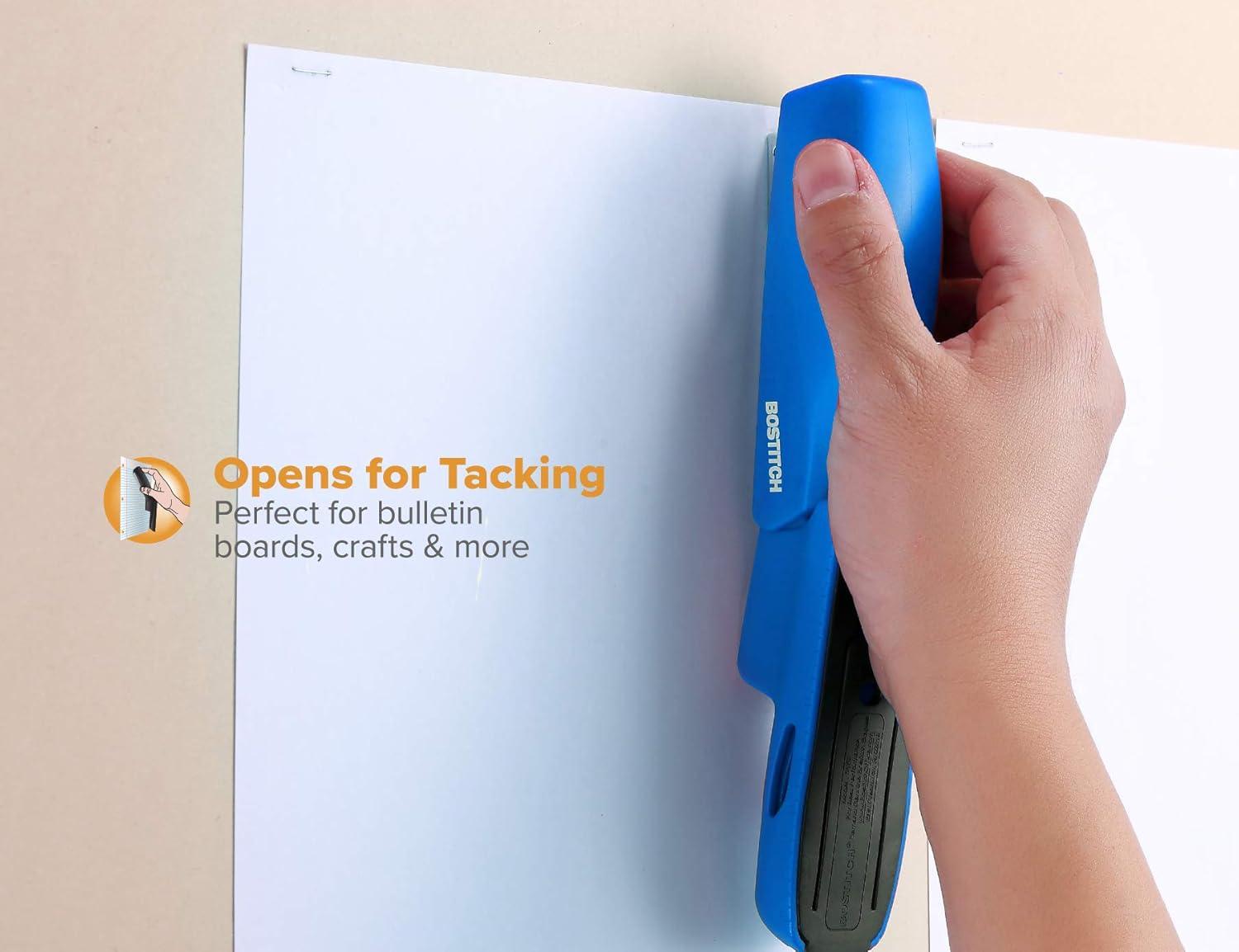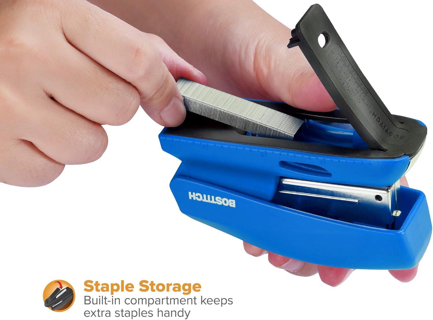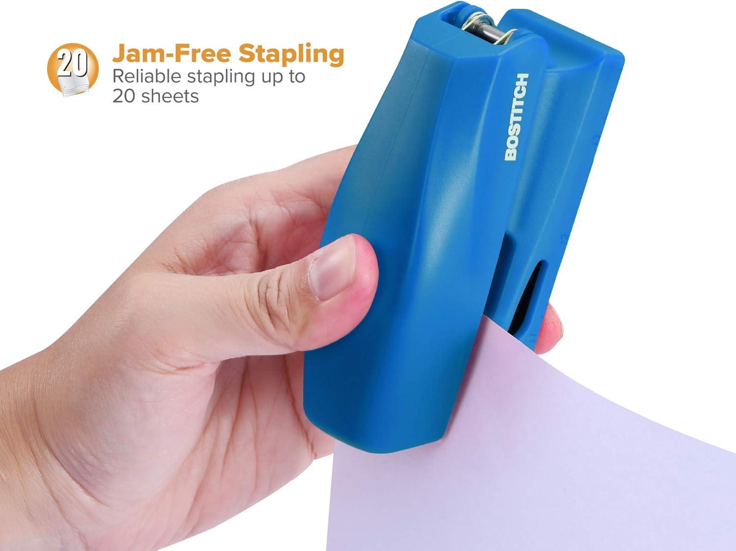 Experience quality stapling with this compact stapler. It staples up to 20 sheets at once with it's easy-to-handle compact design. Using standard staples, this half-strip stapler comes with 210 staples. It features an integrated StapleStore compartment on the base to keep extra sticks close by. Need to measure something? There's even ruler on the bottom edge for simple measuring. Stands both vertically and horizontally for easy use and storage. Opens for bulletin board tacking and crafting! Zero movement during use thanks to the rubber base. Color matches other organization products for a clean and focused aesthetic! Features: Staples up to 20 sheetsIntegrated ruler + staple storage compartment on base. Opens for bulletin board tackingVertically standing. Compact, half-strip design. Includes 210 Premium Standard Staples.