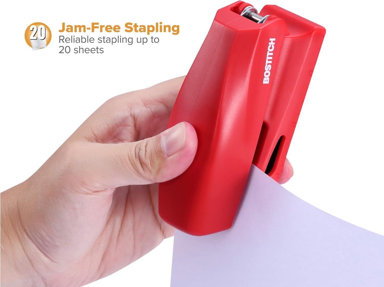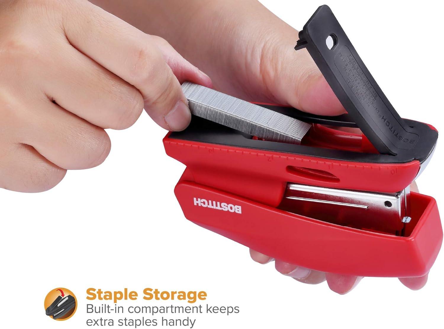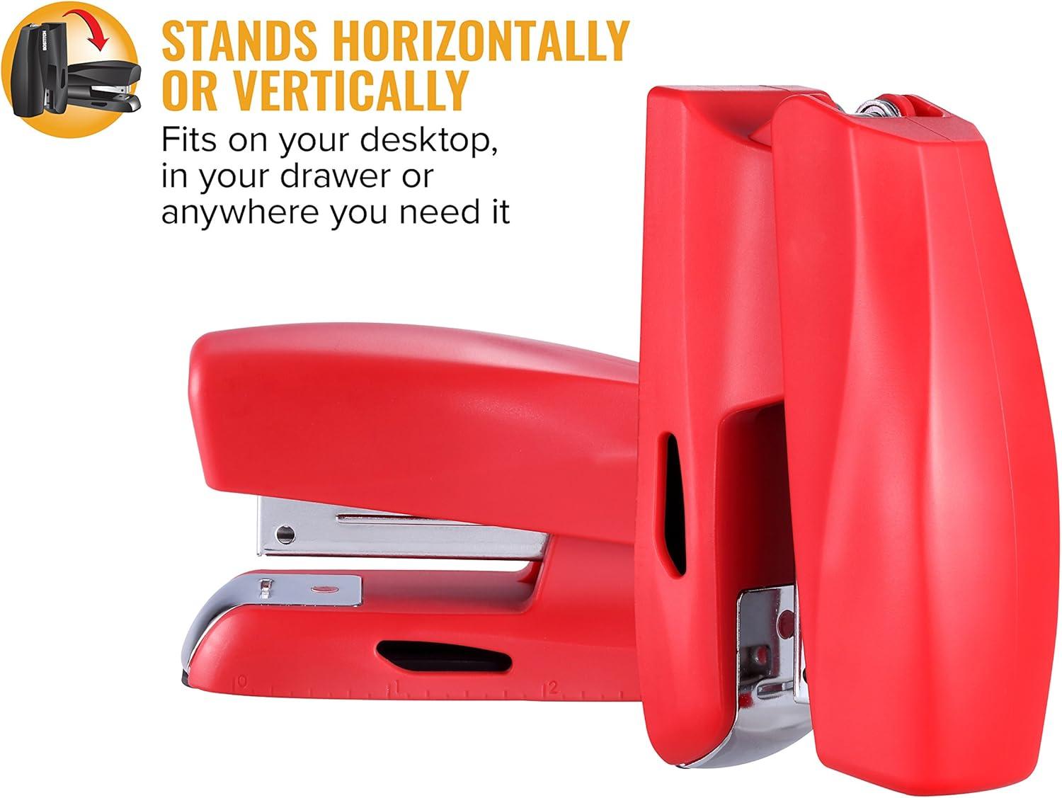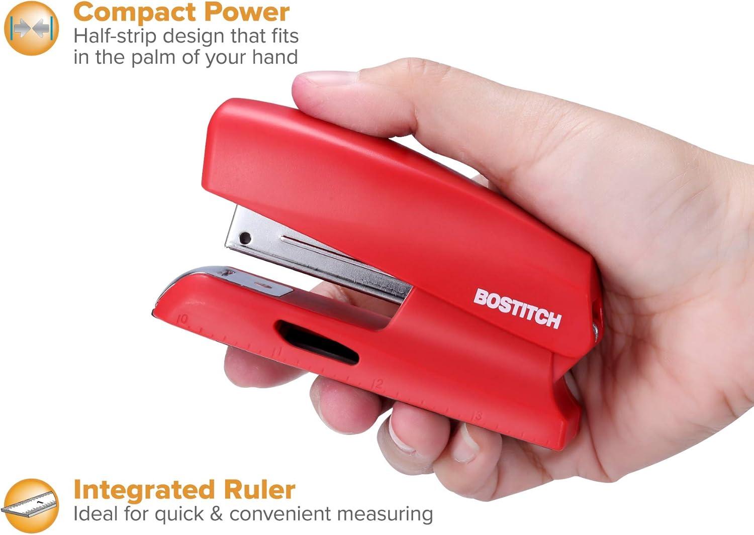 Experience quality stapling with this compact stapler. It staples up to 20 sheets at once with it's easy-to-handle compact design. Using standard staples, this half-strip stapler comes with 210 staples. It features an integrated StapleStore compartment on the base to keep extra sticks close by. Need to measure something? There's even ruler on the bottom edge for simple measuring. Stands both vertically and horizontally for easy use and storage. Opens for bulletin board tacking and crafting! Zero movement during use thanks to the rubber base. Color matches other organization products for a clean and focused aesthetic! Features: Staples up to 20 sheets. Integrated ruler + staple storage compartment on base. Opens for bulletin board tackingVertically standing. Compact, half-strip design. Includes 210 Premium Standard Staples.