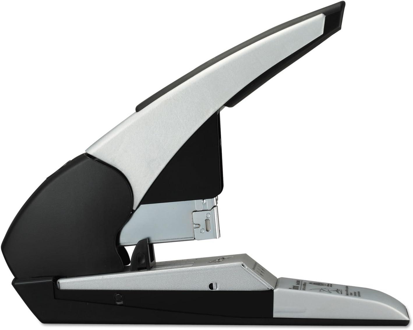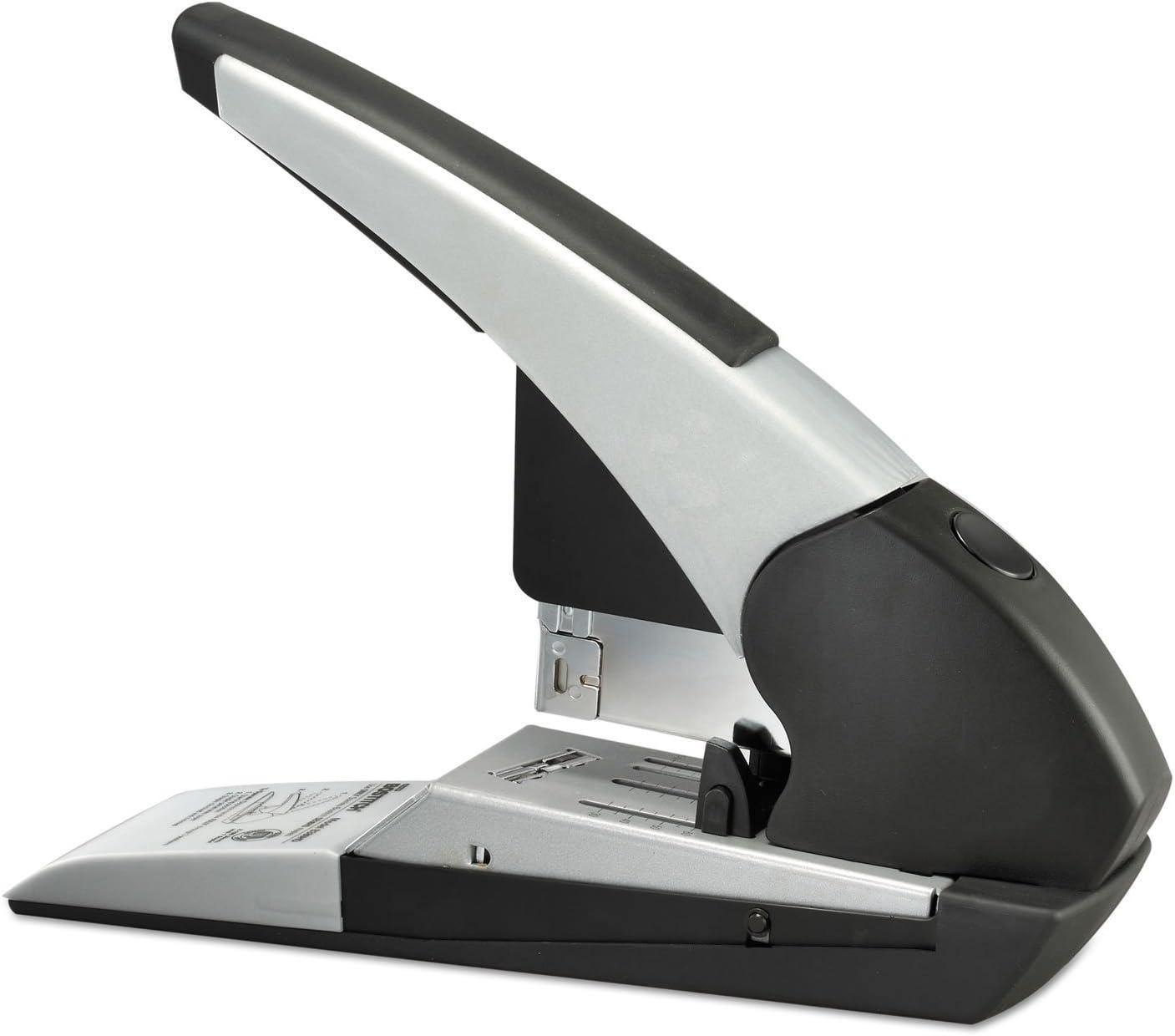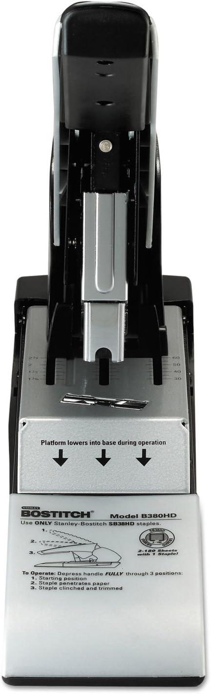 Meet the King! Superior to all our heavy duty staplers is the Auto180 Xtreme Duty Automatic Stapler that can staple a profound 180 sheets with just ONE staple size! Skillfully, this stapler automatically trims the staple to the precise size for a customized fit to each job at hand. To generate a professional look and facilitate neater stacking every time we built in a flat clinch system. No more agonizing over staple jams that hinder your productivity because we have integrated the Anti-jam technology for convenience. For your optimal stapling comfort, we have fabricated an ergonomic handle and to guarantee durability and quality it's constructed of metal composite. Pushing the boundaries to allow you to personalize the reach of the staple is the adjustable paper stop. Extra reinforcement is needed with extreme duty jobs so we applied a full rubber base pad to keep the stapler in place at all times. Uses Staples SB38HD. 7 year warranty.