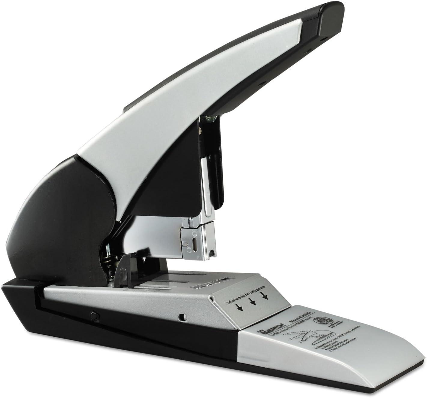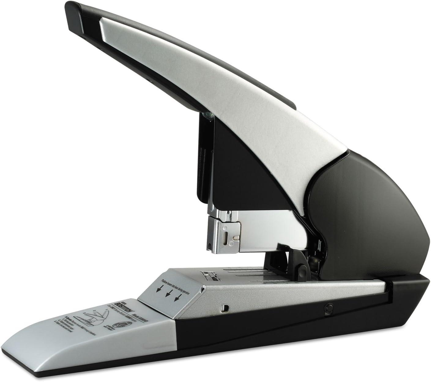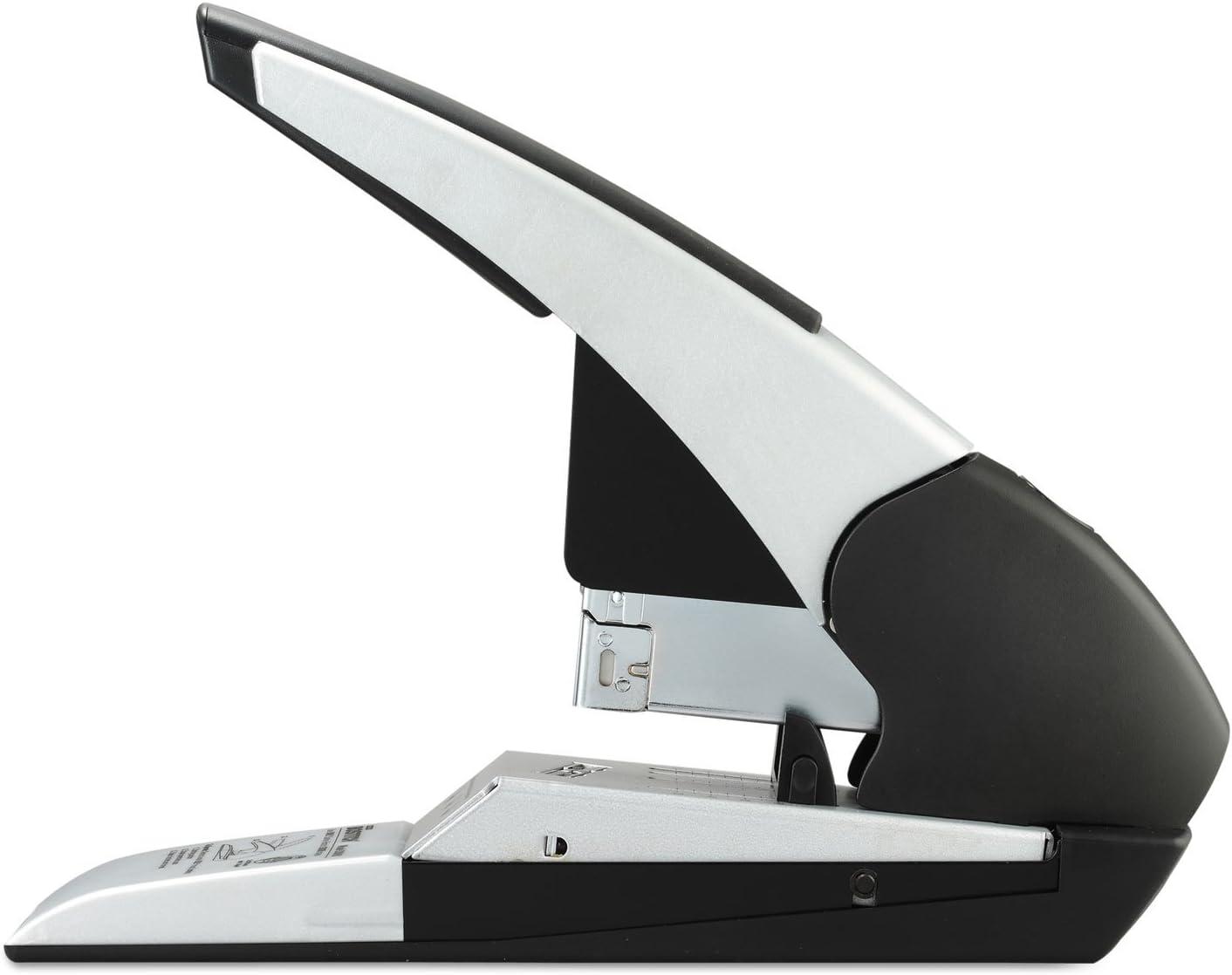 Meet the King! Superior to all our heavy duty staplers is the Auto180 Xtreme Duty Automatic Stapler that can staple a profound 180 sheets with just ONE staple size! Skillfully, this stapler automatically trims the staple to the precise size for a customized fit to each job at hand. To generate a professional look and facilitate neater stacking every time we built in a flat clinch system. No more agonizing over staple jams that hinder your productivity because we have integrated the Anti-jam technology for convenience. For your optimal stapling comfort, we have fabricated an ergonomic handle and to guarantee durability and quality it's constructed of metal composite. Pushing the boundaries to allow you to personalize the reach of the staple is the adjustable paper stop. Extra reinforcement is needed with extreme duty jobs so we applied a full rubber base pad to keep the stapler in place at all times. Uses Staples SB38HD. 7 year warranty.