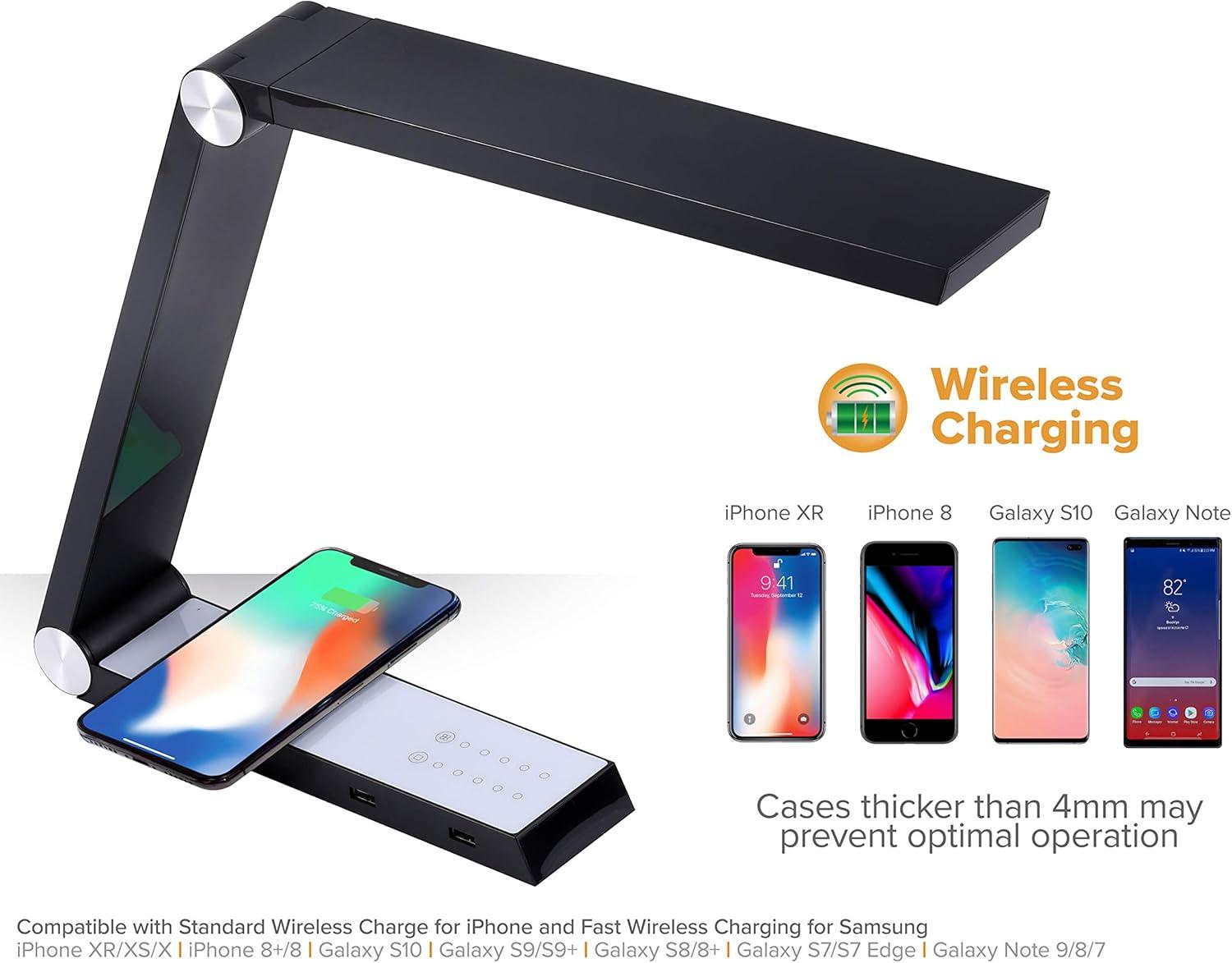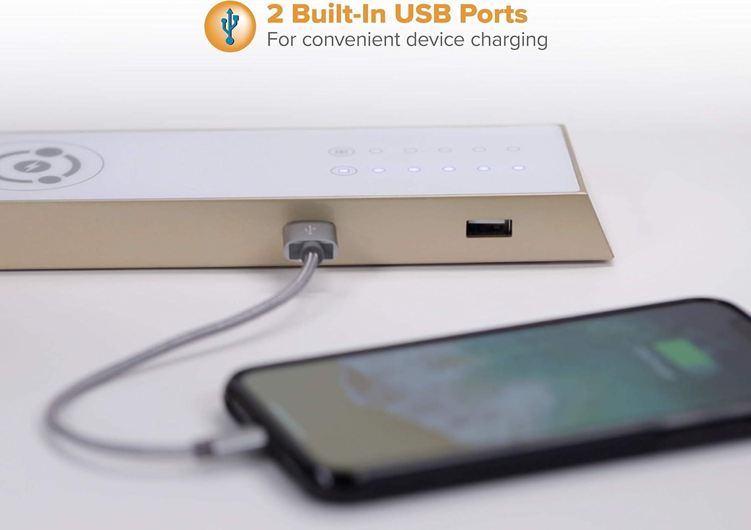 Wireless charging pad and two built-in USB ports to quickly power up devices