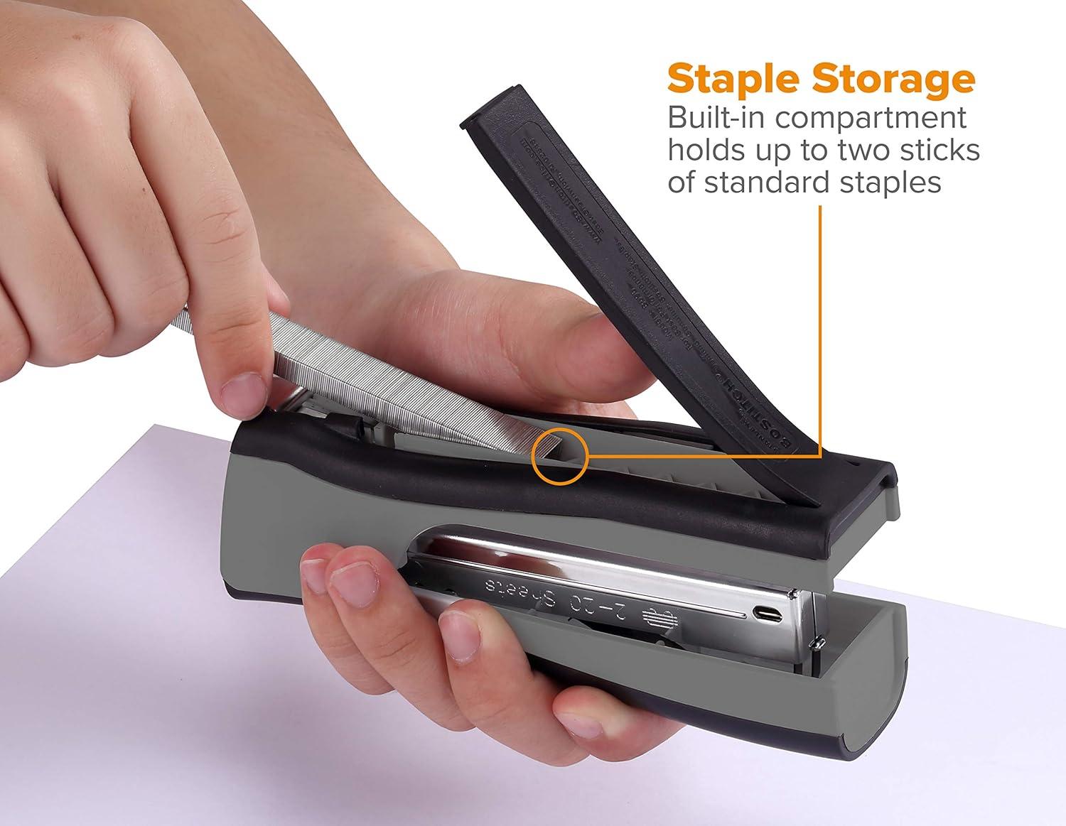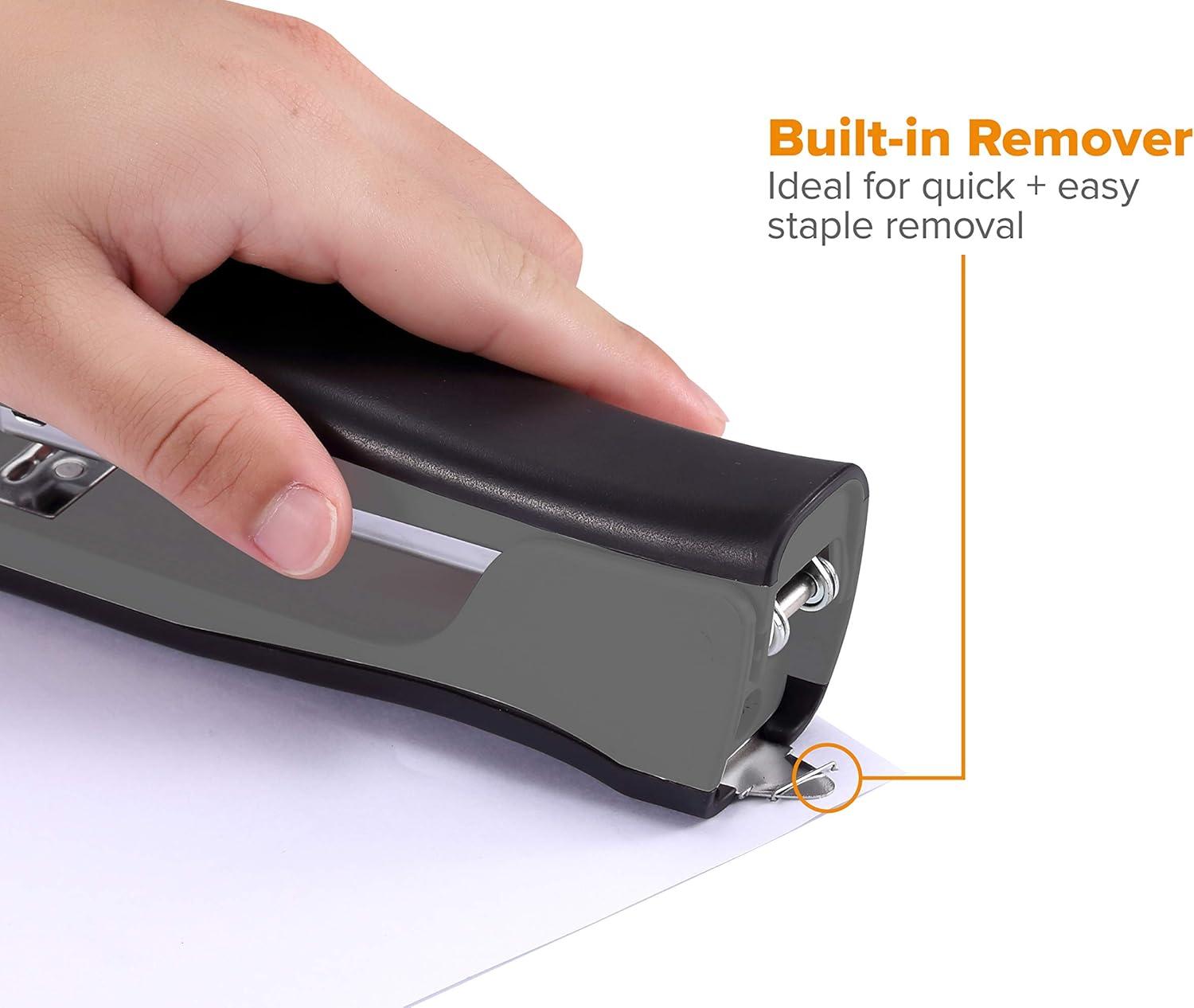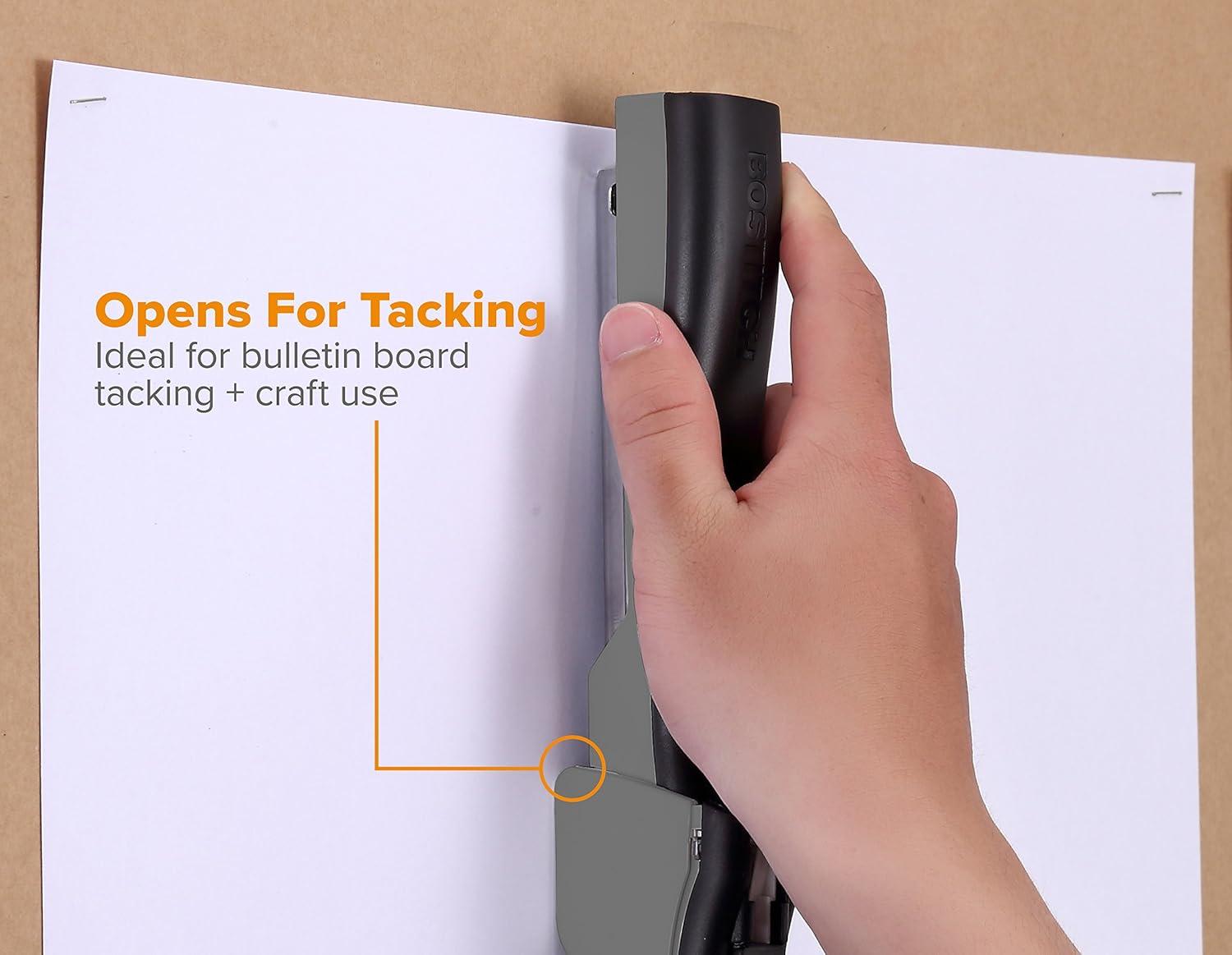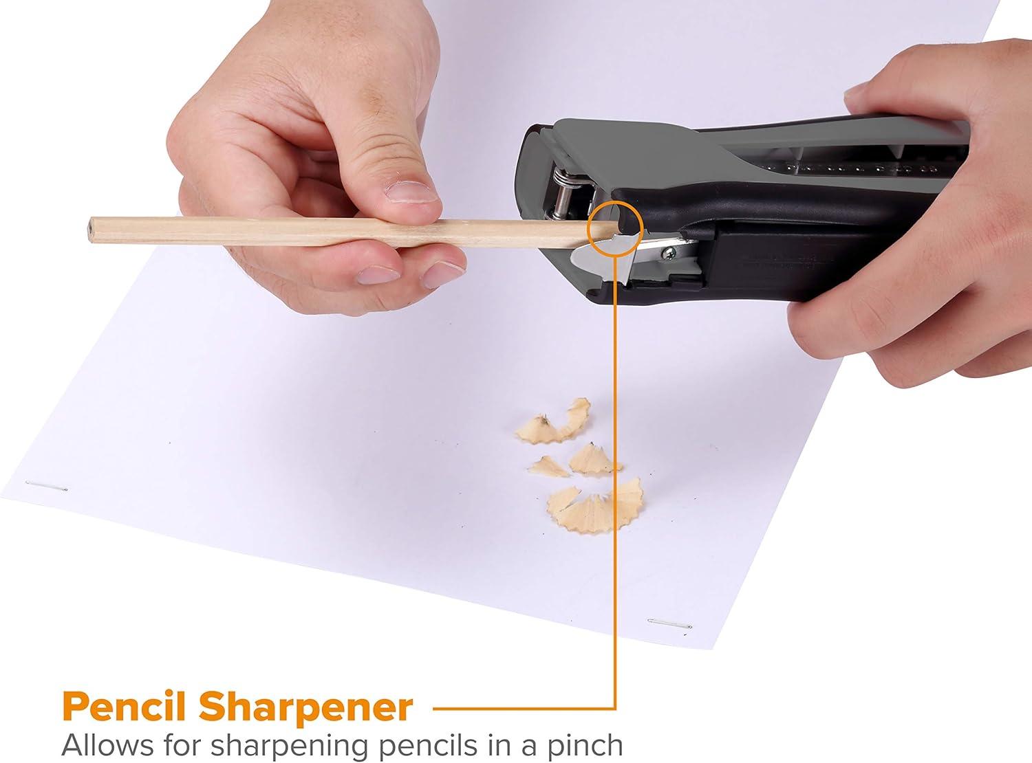 Ready to step up your stapling game? do so with this 20-sheet dynamo stapler by Bostitch. It features an integrated Pencil sharpener and push-style remover, making it an all-in-one product. Perfect for the classroom or corporate office. You can tack bulletin boards or complete any craft as it opens up. Get a strong grip with the ergonomic rubber handle and non-slip base. Stand it up or lay it flat for easy grabbing and storage options. The color matches the Bostitch konnect line, making office organization and wire management a breeze. Now get to stapling!features: staples up to 20 sheets built-in Pencil sharpenerintegrated remover + staple storage compartment on baseopens for bulletin board tacking vertically.