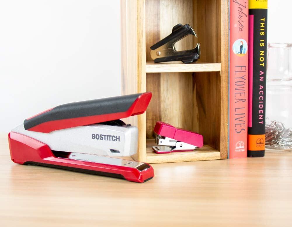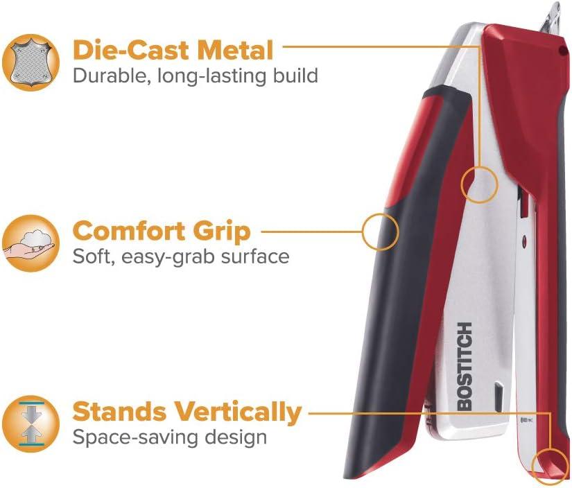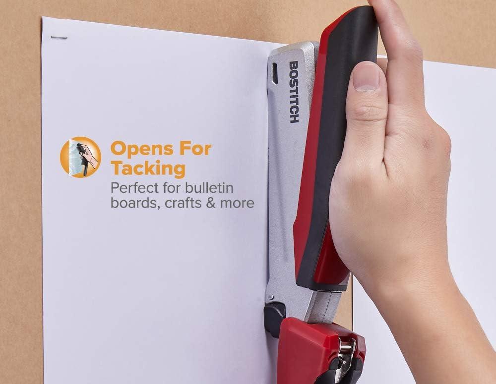 With One-Finger Stapling Technology, all it takes is a finger to get the job done. The long-lasting sleek, die-cast metal body provides the eye candy your desk craves. The easy stapling of up to 25 sheets along with the ergonomic non-slip comfort grip and base, provide the luxury you deserve. Using standard staples, it also works jam-free and opens for bulletin board tacking. Perfect for home, school, or the office – experience a better way to staple.