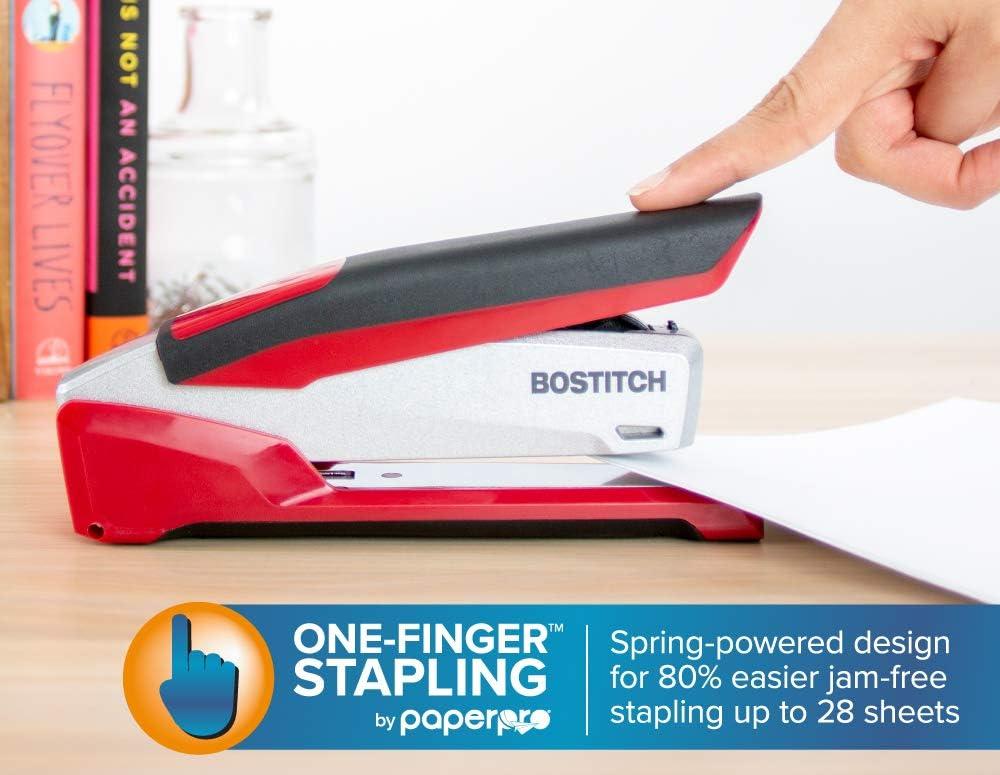 With One-Finger Stapling Technology by PaperPro, all it takes is a finger to get the job done. The long-lasting sleek, die-cast metal body provides the eye candy your desk craves. The easy stapling of up to 28 sheets along with the ergonomic non-slip comfort grip and base, provide the luxury you deserve. Using standard staples, it also works jam-free and opens for bulletin board tacking. Perfect for home, school, or the office – experience a better way to staple.