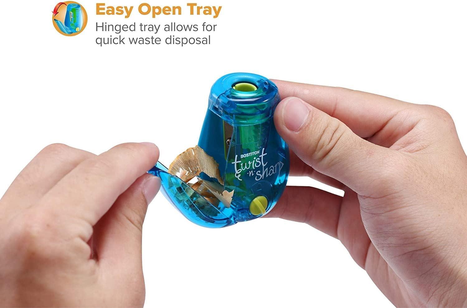 Looking for a handy and portable sharpener? Pencils are the weapon of choice for many artists and students, and for good reason. They don't bleed ink, allow you to do fine line work and shading, and let you erase mistakes. But everyone knows a good set of pencils also needs an easy-to-use sharpener. Using low-quality sharpeners can easily break tips, which is why it's important to use a tool that can safely and efficiently hone pencils. If you want an accessory that you can take anywhere to keep pencils sharpened exactly the way you need them to be sharpened, we've got just the right one for you. Sharpen your pencils anytime with the Bostitch Twist-n-Sharp Pencil Sharpeners! Write and sketch all you want without your pencil tips breaking. Thanks to our very own Tip Saver Technology, these handheld sharpeners will hone your pencils without over-sharpening them, so they last longer. More than that, these innovative tools have a ratchet mechanism that allows you to smoothly twist back and forth or clockwise and counterclockwise for a fast and easy sharpening experience. Each one even has an adjustable dial that lets you choose between sharpening your pencils to a pointed or blunt tip! Perfect for artists who use different types of pencils for work. What's great about this portable set is that it comes with translucent lime green, blue, and red sharpeners that you can easily locate inside your bags. The door of the shavings tray also comes attached to the sharpener, which means no more misplacing it when it's time to empty the receptacle out. Still not convinced? Here are more reasons to get this sharpener: Compatible with standard, color, and make-up pencils Safe to use for kids Lightweight and compact Change the way you sharpen your pencils. Add the Bostitch Twist-n-Sharp Pencil Sharpeners to your cart TODAY!