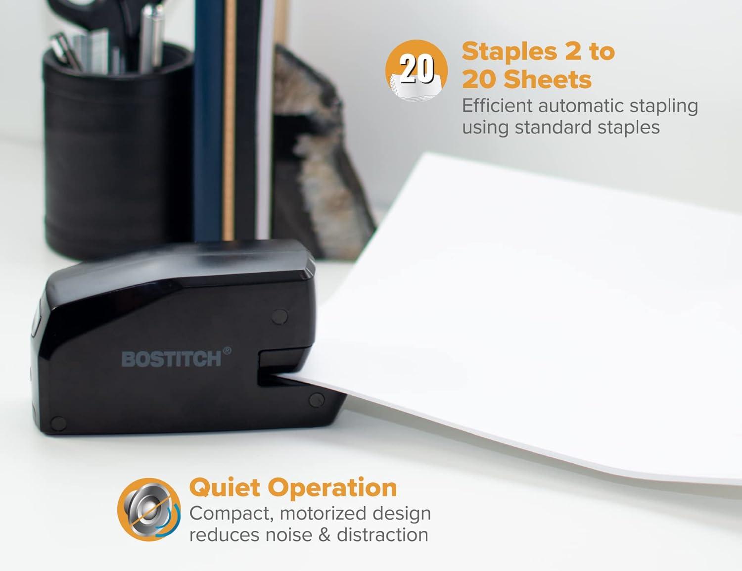 Bostitch Office Portable Electric Stapler, 20 Sheets, AC or Battery Powered, Includes 1250 Staples, Blue(Black)