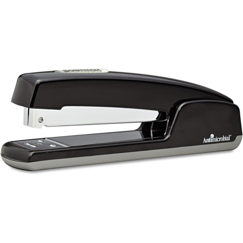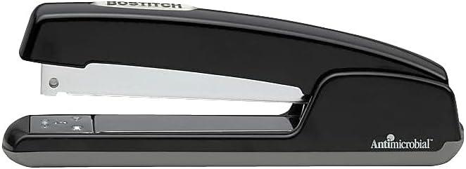 Fully featured desktop stapler. AntiJam mechanism eliminates frustrating staple jams. Durable all metal construction. Opens for tacking and staples with inward and outward clinch. Full rubber base pad. Takes full strip of standard staples. 20 sheet stapling capacity. Black. Manufacturer. All sheet capacities based on 20-lb bond. Elevate your stapling experience with the Bostitch B5000 executive desktop stapler. This stylish fully featured die cast metal stapler is designed to enhance the look of your work environment while maintaining the renowned Bostitch quality that has served millions of office workers for over 100 years. With an industry leading design and full feature set, the Bostitch B5000 desktop stapler brings out the executive in all of us. Enhance your workspace Like many Bostitch products the B5000 features an AntiJam spring loaded floating core inside the stapling magazine. This core supports the staple prior to driving. If a staple buckles during the stapling process the spring loaded core moves allowing the staple to exit the magazine and eliminating frustrating and time consuming staple jams. Continuing a Legacy of QualityThe B5000 executive desktop stapler is the latest in a long line of legendary Bostitch products. Dating back to 1896 when the company was founded by Thomas Briggs as the Bostitch Stitching Company, Bostitch has been providing industry leading fastening solutions for over 100 years. Yes, like the executives who prefer it, the die cast metal B5000 desktop stapler with its stylish yet durable exterior has the highest of standards to live up to a whole centurys worth and it more than succeeds in carrying on a legendary tradition that upholds its brand. Backed by a 7-year product warranty and a variety of features that include a flexible pivot point that allows this stapler to open easily for bulletin board tacking and a rotating anvil that allows for the option of creating a permanent or temporary clinch, the Bostitch B5000 includes the ultimate in stapling technology. The Bostitch B5000 Executive Stapler features: Die cast metal construction for added durability AntiJam technology to eliminate frustrating staple jams Full rubber base pad to keep stapler securely on your desktop 20 sheet stapling capacity Flexible pivot point allowing stapler to open for tacking Rotating anvil for permanent or temporary clinching ability The Bostitch Advantage: 7-year warranty Whats in the BoxOne Bostitch B5000-BLACK Executive Desktop Stapler