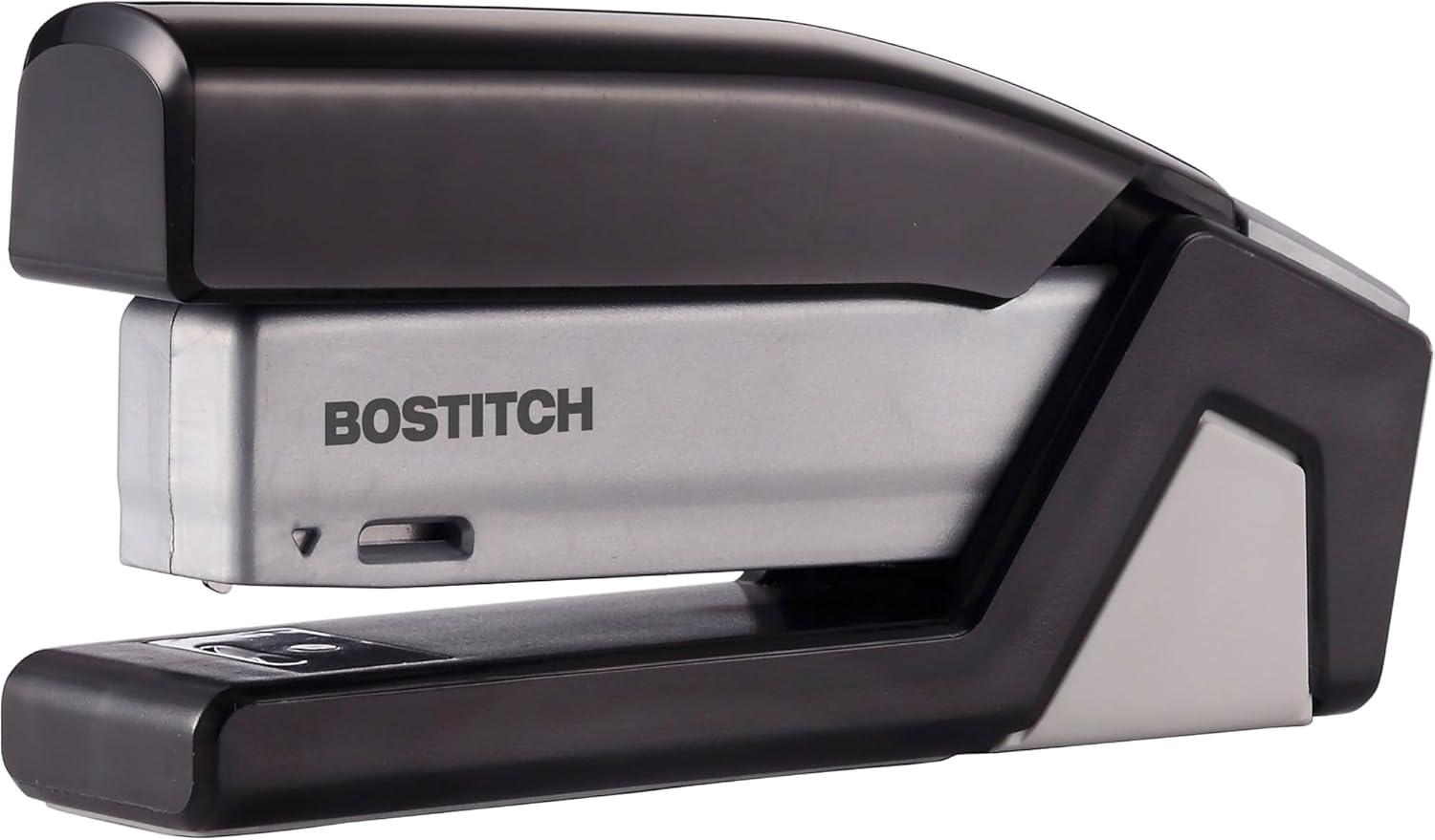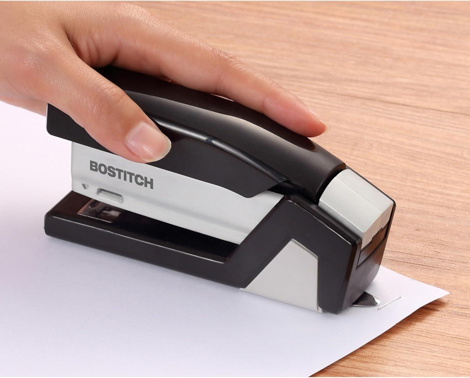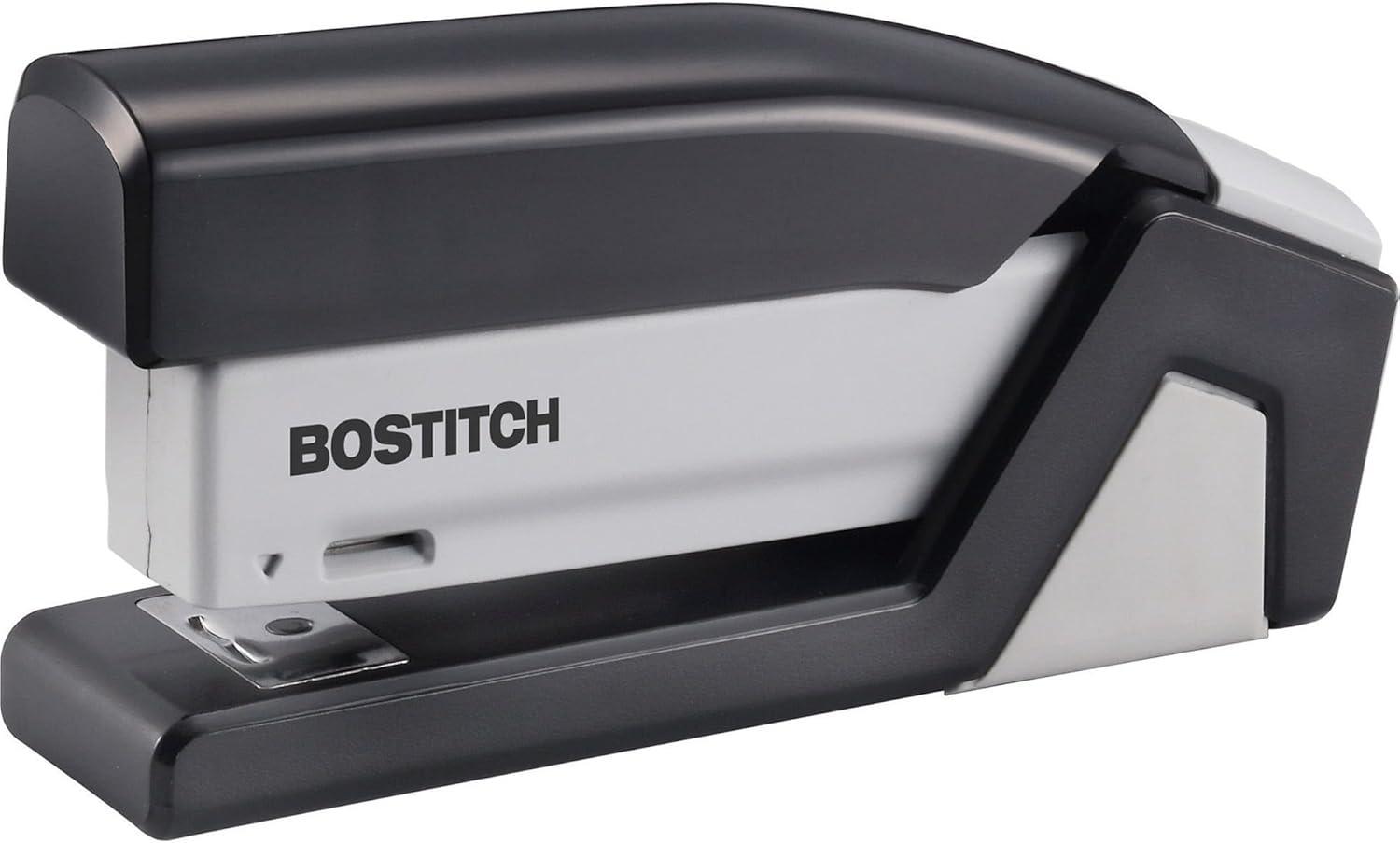 Paperwork can be a hassle, but stapling it shouldn't be. With the Bostitch inVOLVE 20 Friendly Compact's one-finger spring-powered technology, experience fast and easy, jam-free stapling when you need it most at school, work, or the home office. 80% easier than standard staplers, all it takes is the press of a finger to fasten up to 20 sheets. The lightweight, compact design allows for easier use when held, or taken on-the-go in a backpack or travel bag. With a built-in staple puller, staple storage compartment, and an ergonomic, curved design that positions perfectly in the palm of your hand, comfortably staple without missing a sheet. Opens for bulletin board tacking and craft use. Half strip (105) staple capacity; uses standard staples. For optimal performance, use Bostitch Premium Standard Staples (1901). Made of 70% post-consumer content recycled plastic. Three-Year Limited Warranty. FEATURES: 80% easier stapling with one-finger technology One finger can staple up to 20 sheets 20 sheet capacity Built-in staple remover for quick fixes Flip-open staple storage compartment holds two extra staple strips Smooth, jam-free performance Uses standard staples Opens for bulletin board tacking + crafting Compact, lightweight design for easier handheld or travel use Non-slip base for desktop protection + stability Made of 70% post-consumer content recycled plastic