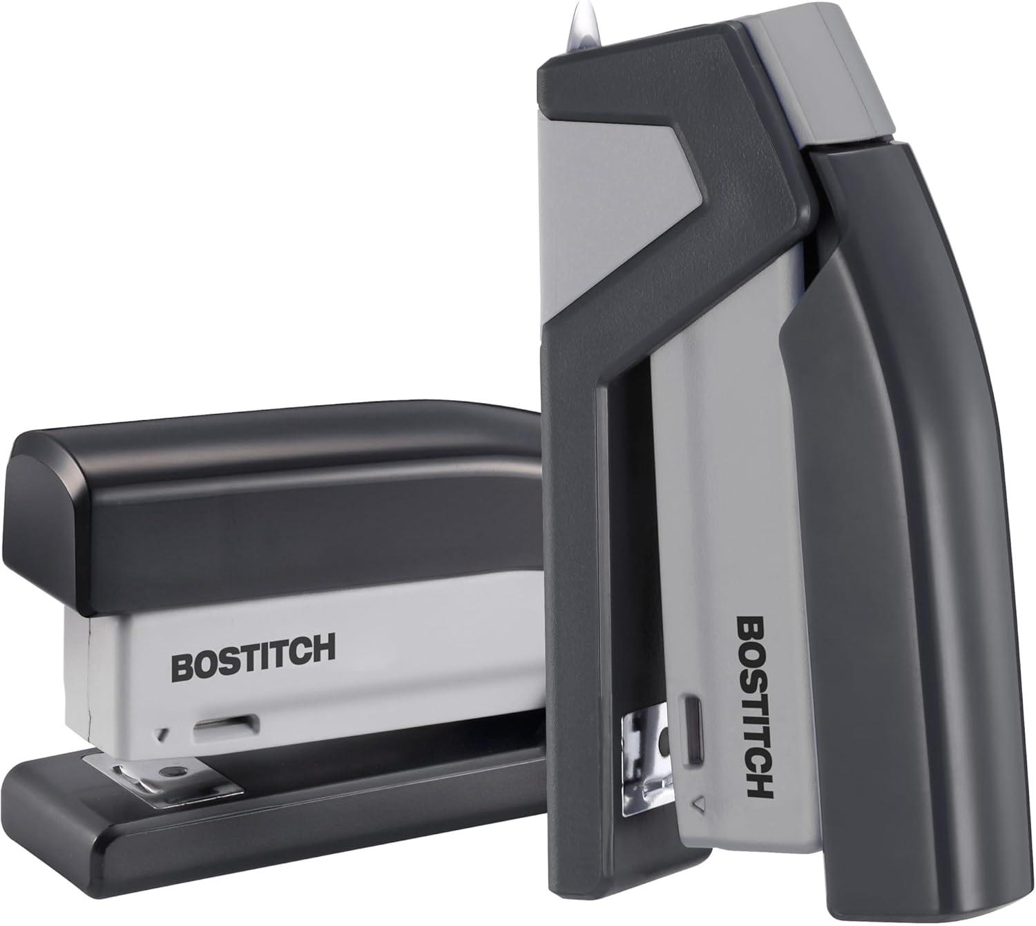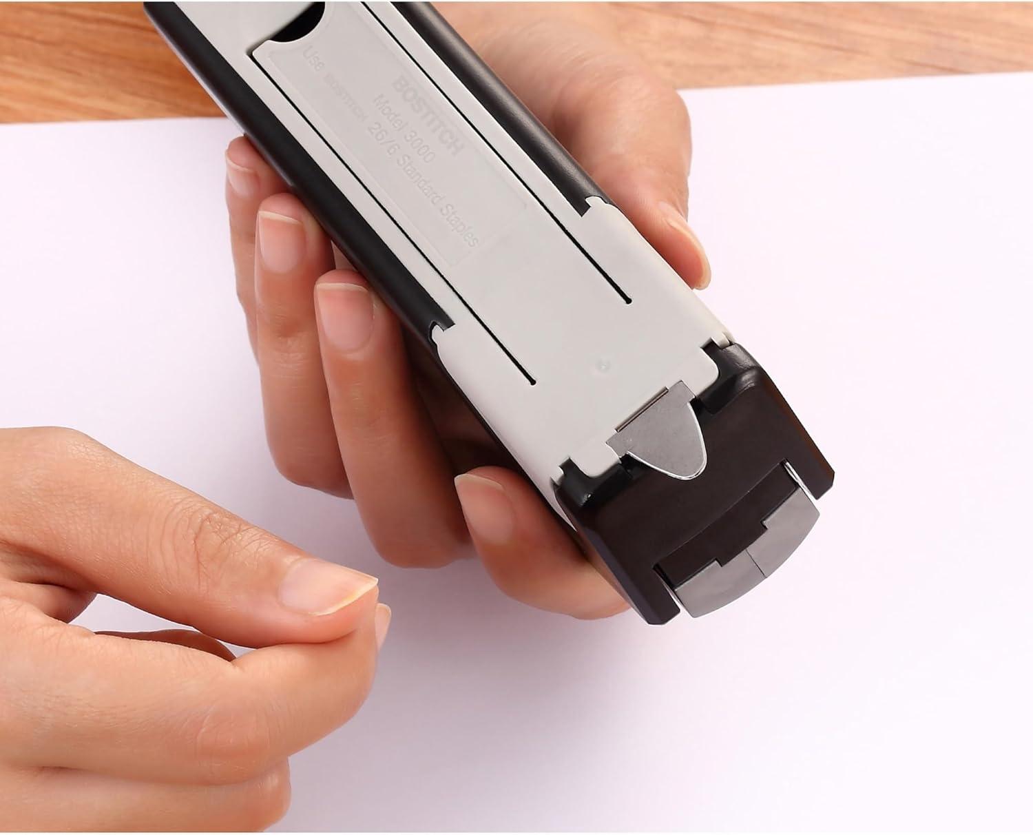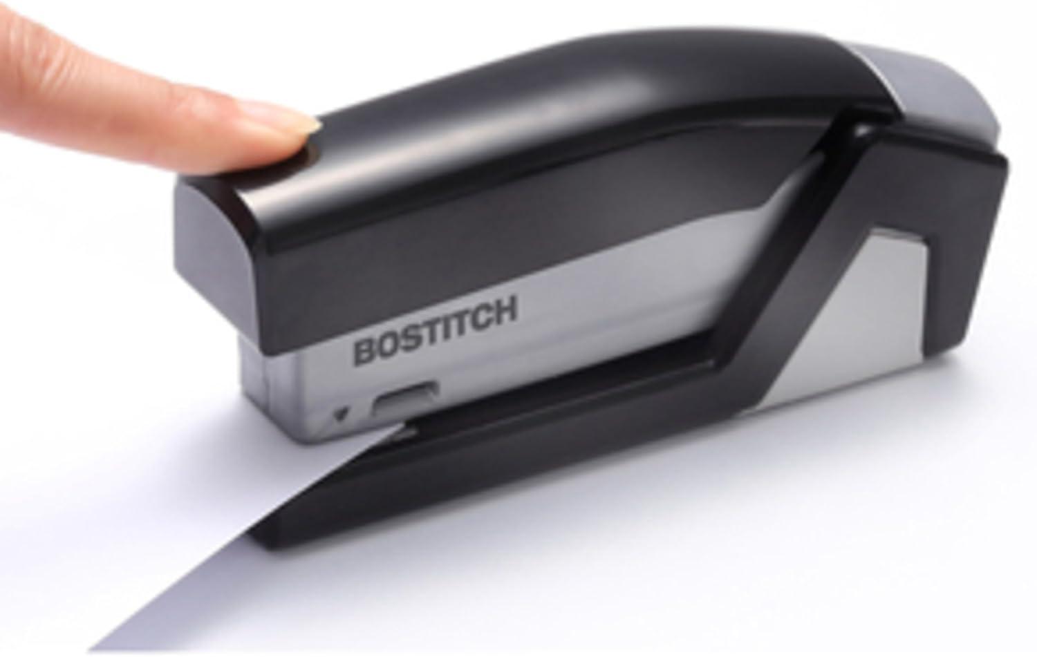 Paperwork can be a hassle, but stapling it shouldn't be. With the Bostitch inVOLVE 20 Friendly Compact's one-finger spring-powered technology, experience fast and easy, jam-free stapling when you need it most at school, work, or the home office. 80% easier than standard staplers, all it takes is the press of a finger to fasten up to 20 sheets. The lightweight, compact design allows for easier use when held, or taken on-the-go in a backpack or travel bag. With a built-in staple puller, staple storage compartment, and an ergonomic, curved design that positions perfectly in the palm of your hand, comfortably staple without missing a sheet. Opens for bulletin board tacking and craft use. Half strip (105) staple capacity; uses standard staples. For optimal performance, use Bostitch Premium Standard Staples (1901). Made of 70% post-consumer content recycled plastic. Three-Year Limited Warranty. FEATURES: 80% easier stapling with one-finger technology One finger can staple up to 20 sheets 20 sheet capacity Built-in staple remover for quick fixes Flip-open staple storage compartment holds two extra staple strips Smooth, jam-free performance Uses standard staples Opens for bulletin board tacking + crafting Compact, lightweight design for easier handheld or travel use Non-slip base for desktop protection + stability Made of 70% post-consumer content recycled plastic